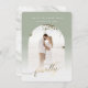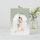 Finally Gold Script & Sage Archway Framed Photo Save the Date Cards with Marble Texture back Side. These Save the Date Cards are soft, airy, and soo chic, with white fading ombre gradient overlay to highlight your text, and gold handwriting script font with tails. Personalise it with your photograph. Shown in faux gold foil lettering. - Wedding Save the Date custom photo cards!