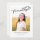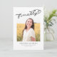 This modern graduation announcement features the word finally written in black over a single photo. The back of the card can be used for additional text or as an invitation.