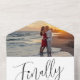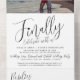 Finally belated wedding party with a tear-off RSVP or QR code option in simple timeless black and white. Typographic script on a white background design wedding invitation reads Finally Celebrate with us. Simple modern contemporary design, personalise with your own belated wedding or renewal venue, couples name and reply details, website QR code and your favourite photo. This design requires no extra envelopes and has a detachable perforated RSVP or guest can scan your own use to generate QR code for super easy replying. Matching wedding products and other colour options available in the store. Design by www.mylittleedenweddings.com