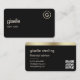 Professional business card designed for financial advisors using a sleek black color palette with gold accents. The layout includes a QR code to share online information while keeping the design clean, polished, and easy to read. Suitable for financial advisors, planners, and finance professionals. Fully customizable text and QR destination with a print-ready layout.