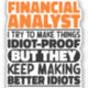 Funny Financial Analyst Sayings "Financial Analyst I Try To Make Things Idiot Proof But They Keep Making Better Idiots". Grab this Funny Financial Analyst design as a funny gifts for an awesome mum, dad or friend.