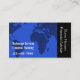 Graphic of a world map with dollar symbols on a blue background with a black side area for your company name in vertical text. This business card has many uses for insurance representatives, financial planners, brokers, brokerage firms, financial consultants and many more professional occupations.