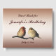 A pair of house finches perched on a branch adorn this lovely birthday party guest book. The male has red plumage on his head and breast. The female is tan and brown with stripes. Personalise the text for your special occasion.