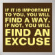Motivational quote poster in with text in pale yellow colour over brown background. The text is " If it is important for you, you will find a way. If not, you will find an excuse." You can customise the colour of text and background according to your likeness.