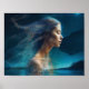Immerse yourself in serenity with “Finding the Calm,” an exquisite AI Fantasy Digital Art Print. This mesmerising side portrait of a mystical woman, poised against a tranquil lakescape, invites you into a world where the cosmic veil illuminates, crafting an oasis of inner peace and Zen.