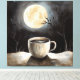 Finding winter tranquillity with coffee and moon. canvas print