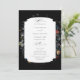 This chic program design features an 18th century Dutch floral still life, including white, red and gold tulips and wildflowers on a black background with custom centre label, complementary floral graphics and elegant flowing custom calligraphy.