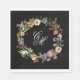 This chic napkin design features a vintage style wildflower wreath on a black background with editable text fields for your monogram.