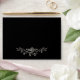 This chic envelope design features an 18th century Dutch floral still life, including white, red and gold tulips and wildflowers on a black background with complementary floral graphics and text fields for your monogram.