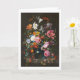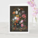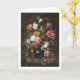 Fine art oil painting is vintage still life of vase and flowers. Dark background with garden flowers of rose, lilies, tulip and more.