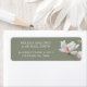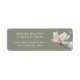 Pink white painted magnolia flowers on a white background. Use this label with full names as an addition to the casual wedding invitation with first names only.