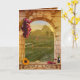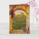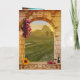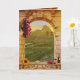 Anniversary congratulations card in classic Italian vintage style with a vineyard theme. With a fine art painting of a Tuscan landscape framed by a Roman arch with grapes, wine and a sunflower. The "Happy Anniversary" stylized text is a separate image and can be deleted if you prefer custom text. On the inside is the option to add your own photo. Perfect for couples who love travel, wine, or the rustic beauty of the Italian countryside.