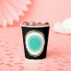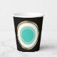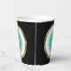 The original design by Leslie Sigal Javorek that's featured on these cups mimics the look of fine bone china w/ an Aqua centre that gradually fades to an almost translucent white ending at a hairline black ring, wide brushed gold look border and black rim. Elegant Art Deco / Streamline style. Check out HoMeArts' coordinating products!