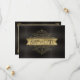 Delicate filigree frames and ornaments, textured in faux gold foil, decorate the pieces of this elegant wedding suite. A romantic serif font gives these wedding 'Save the Date' cards a classic, yet modern look. A textured-effect background in warm charcoal adds the finishing touch. Search ID871 to see the complete wedding collection and other colour choices for this design.