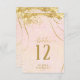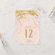 A watercolor background in shades of rose gold is topped by an abstract of fine gold lines and glittering lighting effects to create the pieces of this beautiful wedding suite. The wedding table number card shown here also features elegant calligraphy and a template to easily add your own names, wedding date and table numbers. Search ID867 to see other pieces and colour choices for this set.