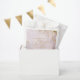 A watercolor background in shades from lavender to mauve is topped by an abstract of fine gold lines and glittering lighting effects to create the pieces of this beautiful wedding suite. The wedding favour bag shown here also features 'Thank You' calligraphy and a personal message along with the bride and groom's names and wedding date. Search ID867 to see other pieces and colour choices for this set.