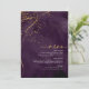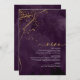A watercolor background in shades of plum purple is topped by an abstract of fine gold lines and glittering lighting effects to create the pieces of this beautiful wedding suite. The wedding 'Menu' card shown here also features elegant calligraphy and an off-centred layout for visual appeal. Easily add your own initials, wedding date and menu selections using the provided template. Search ID867 to see other pieces and colour choices for this set.