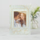 A watercolor background in shades of sage green is topped by an abstract of fine gold lines and glittering lighting effects to create the pieces of this beautiful wedding suite. The wedding 'Thank You' card shown here also features elegant calligraphy and a gradient frame to hold your photo. Easily add your own personal thank you message on the back using the provided template. Search ID867 to see other pieces and colour choices for this set.