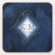 A watercolor background in shades from royal blue to navy is topped by an abstract of fine gold lines and glittering lighting effects to create the pieces of this beautiful wedding suite. The wedding paper coaster shown here also features a gradient, diamond-shaped frame to hold the bride and groom's initials and wedding date. Search ID867 to see other pieces and colour choices for this set.