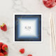 A watercolor background in shades from royal blue to navy is topped by an abstract of fine gold lines and glittering lighting effects to create the pieces of this beautiful wedding suite. The wedding paper napkin shown here also features a gradient, gold-edged frame to hold the bride and groom's initials and wedding date. Search ID867 to see other pieces and colour choices for this set.