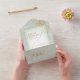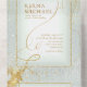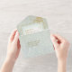 A watercolor background in shades of sage green is topped by an abstract of fine gold lines and glittering lighting effects to create the pieces of this beautiful wedding suite. The combined wedding Invitation and RSVP card shown here also features off-centred text and a beautiful gradient frames to hold all your text. Easily add your own names, wedding date and event details using the provided template. Search ID867 to see other pieces and colour choices for this set.