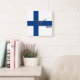 Finland Flag Dazzling Patriotic Square Wall Clock in the colours and the elements of the Finland national flag covering the front of the clock. National flag colours are complemented with the text "Finland" on the bottom. Text is fully customisable using "Customise it!" feature. Feel free to change it, remove it or add your own. This charming design is the stunning gift and the great show piece on the wall. © CountriesOfTheWorld
