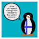 Ms. Penguin travelled to Finland and added a vest of the Finnish flag to her collection. She wears it proudly on this item. You can add words to her talk bubble and make her say anything fit to print.