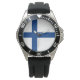 This design features the national flag of Finland (known officially as the Republic of Finland), which is a Nordic country located in Northern Europe. Finland shares land borders with Sweden to the west, Russia to the east and Norway to the north; the country is also defined by the Gulf of Bothnia to the west and the Gulf of Finland of the Baltic Sea across Estonia to the south. Helsinki is the capital of Finland and the country's largest city. Other major cities and towns in Finland include Espoo, Tampere, Vantaa, Oulu, Turku, Jyväskylä, Lahti, Kuopio, Kouvola, Pori, Joensuu, Lappeenranta, Hämeenlinna, Vaasa, Rovaniemi, Seinäjoki, Mikkeli, Kotka and Salo.