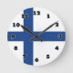 Finnish flag of Finland custom round wall clock. Patriotic scandinavian home decor / wall decorations for office, bedroom, company, business, bar, pub, cafe, shop, store, work space, kitchen etc.