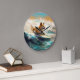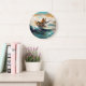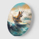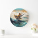 Finnish Lapphund Beach Surfing Painting Large Clock