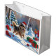 Finnish Lapphund Running Snow with Christmas Hat Large Gift Bag