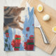 Finnish Lapphund Running Snow with Christmas Hat Tea Towel