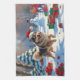 A fluffy Finnish Lapphund runs joyfully through the snowy winter scene, wearing a festive red Christmas hat. This charming design showcases the breed’s thick coat, playful personality, and affectionate nature while capturing the warmth and magic of the holiday season. A delightful winter moment full of festive cheer.