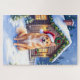 Finnish Spitz Snowy Cabin Santa Hat Christmas Art Jigsaw Puzzle