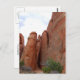 This entrance leads to a narrow passageway among the sandstone fins of Arches National Park. Beyond that is a secret courtyard. Here is a card featuring Delicate Arch in Arches National Park. You can see a tiny person in red just below the arch. A card featuring Delicate Arch is below: