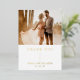 Contemporary and modern foil wedding thank you card featuring a simple and minimal design with "Thank You" along with your names and wedding date in bold typography below your favourite photo. The back has a second picture, your three initial monogram and your personalised message. This minimalist typographic wedding thank you card features all text on the front in real foil.