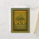 Thinking of you fir tree postcaerd in olive green and ochre