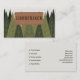 A business card with a forest of fir trees illustration and a wooden sign in the foreground. Perfect for carpenter, woodworker and lumberjack services (tree removal and pruning, firewood, stump grinding and more). It comes with full contact and list of services on the back!