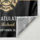 This design features a firemen's flag with black and white stripes, and a thin red line stripe as well. "Congratulations" and a fireman's badge sits above the name of the graduating firefighter. Celebrate in style with this customizable photo banner!