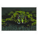A solo fire-bellied toad (Bombina orientalis) resting in a small pool of water. The bright green contrasts with the dark black splotches all over its body while the still water provides a perfect reflection