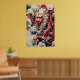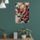 Fire breathing dragon red and white scale poster