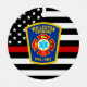 Thin Red Line Fire Department Ornament - American flag in Firefighter Flag colors, modern black and red design . Customize with your department logo and firefighter name.. This personalized firefighter ornament is perfect for fire departments and fire service, retirement or graduation gifts, Christmas gifts to your firefighters. Order these firefighter ornaments bulk wholesale for the fire academy or fire department gifts, firefighter christmas stocking stuffers. COPYRIGHT © 2020 Judy Burrows, Black Dog Art - All Rights Reserved. Fire Department Custom Logo Emblem Firefighter Metal Ornament