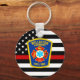Thin Red Line Fire Department Keychain - American flag in Firefighter Flag colors, modern black and red design . Customize with your department logo.. This personalized firefighter keychain is perfect for fire departments and fire service, promotional ideas, or gifts to your firefighters. COPYRIGHT © 2020 Judy Burrows, Black Dog Art - All Rights Reserved. Fire Department Custom Logo Firefighter keychain