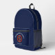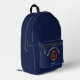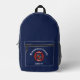Stylish design for firehouses, firefighters and their families, features red generic fire department logo on dark blue background. You can easily customise this backpack with city or county department details or firefighter name in modern white font