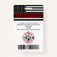 Easily identify yourself and your fireman at the station with these thin red line flag custom personalised photo, logo, bar code, firefighter identification card badges. Personalise your firefighter id badge with firefighter photo, name, id number and fire department. Customise the back with your fire station logo and barcode, or any other information. This thin red line fireman id card badge is perfect for all firefighters, volunteer firefighters, firemen, chief, captain and lieutenant. COPYRIGHT © 2020 Judy Burrows, Black Dog Art - All Rights Reserved. Fire Department Personalised Photo Firefighter ID Badge