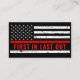 Perfect for all firefighters, and fire departments. Front- Personalise with name, department, address and contact info . Back- 'first in last out'. COPYRIGHT © 2020 Judy Burrows, Black Dog Art - All Rights Reserved. Fire Department Thin Red Line Firefighter Business Card