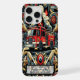 This custom IPHONE 15 features a Fire Department's A vibrant and intricate illustration of a fire engine surrounded by gears, flames, and other industrial imagery. symbolising bravery and heroism,