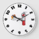 The best way to put out a fire is with a fire extinguisher. This design has a traditional red fire extinguisher that is squirting some foam on some flames to put them out. This fire extinguisher putting out a fire design looks great on this clock. Perfect for yourself or as a gift