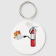 The best way to put out a fire is with a fire extinguisher. This design has a traditional red fire extinguisher that is squirting some foam on some flames to put them out. This fire extinguisher putting out a fire design looks great on this keychain. Perfect for yourself or as a gift