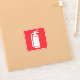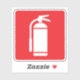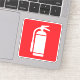 Stickers featuring a white fire extinguisher symbol on a red background.
